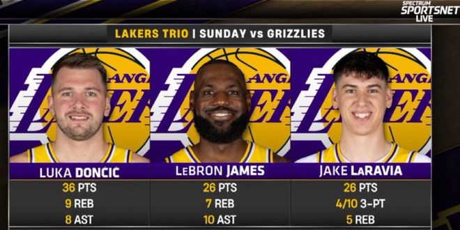 2026年01月05日 湖人末节逆转灰熊 东契奇36+9+8 詹姆斯26+7+10 拉拉维亚26+5